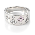 ☆さりげないワンポイントカラーのピンクジルコニアがかわいいフラワーモチーフのジルコニアリング。レディース向けのおすすめ商品です。